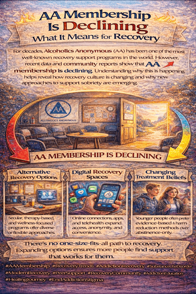 AA membership has been declining steadily over the past decade, even as substance misuse continues to affect millions of individuals and families across communities. Having spent years involved in addiction recovery spaces, I’ve watched these trends closely and reflected on what they may signal for people who are considering Alcoholics Anonymous as a pathway to recovery. The numbers raise important questions about changing attitudes toward traditional support models, the growing demand for more flexible or individualized approaches, and whether existing programs are evolving sufficiently to meet contemporary needs. Beyond AA itself, this shift has broader implications for the recovery ecosystem, including peer support groups, treatment providers, and community-based resources that play a critical role in sustaining long-term recovery.