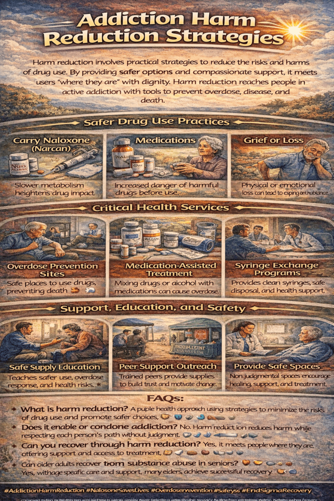 By implementing these harm reduction strategies, communities can effectively reduce the harms associated with drug addiction, improve public health outcomes, and provide much-needed support to individuals on their journey toward recovery. This compassionate approach recognizes that while abstinence is essential, the immediate priority is protecting health, saving lives, and creating pathways to recovery that respect individual choices.