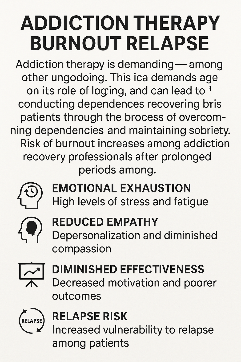 Burnout relapse in addiction therapy is a serious concern that can affect both professionals and individuals in recovery. By recognizing early warning signs, addressing root causes, and maintaining healthy coping strategies, individuals can prevent burnout from recurring. Prioritizing self-care, setting realistic boundaries, and fostering a supportive work environment are essential steps toward long-term well-being and effectiveness in addiction therapy.
