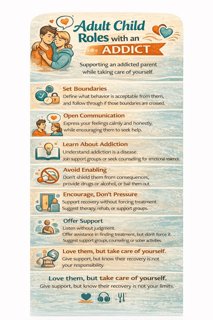 The relationship between an adult child and their parent is a powerful force in shaping the parent’s journey through addiction and recovery. By fostering open communication, setting healthy boundaries, and actively supporting recovery efforts, adult children can create a positive, nurturing environment that facilitates healing and long-term well-being for both parent and child.