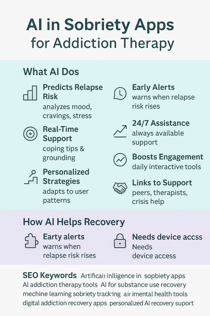 Integrating artificial intelligence (AI) into sobriety apps presents numerous benefits for addiction therapy, significantly improving the quality, accessibility, and personalization of treatment. Here’s how AI enhances addiction therapy and why it matters: