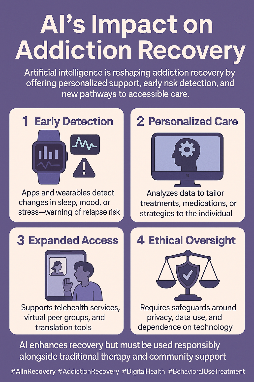 When used intentionally, AI becomes a helpful companion—while therapy and community remain the heart of recovery.