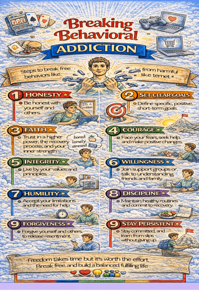 Awareness + coping skills + consistent support. Recovery is about learning new ways to meet emotional needs without compulsive behavior.