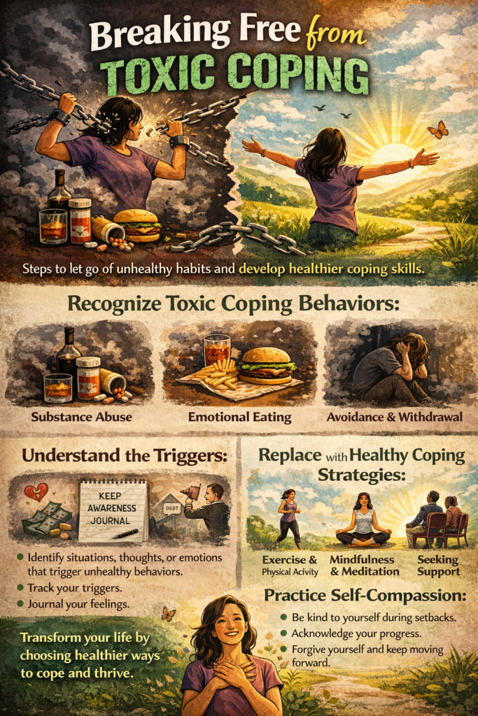 Breaking free from toxic coping is a process that requires awareness, support, and a commitment to personal growth. By recognizing harmful coping behaviors and replacing them with healthier strategies such as open communication, emotional awareness, and supportive relationships, individuals can begin to heal from past stress and trauma. Recovery is not about achieving perfection but about making consistent efforts toward healthier responses to life’s challenges. With patience, guidance, and supportive environments, people can move beyond toxic coping patterns and build stronger foundations for long-term emotional well-being and resilience.
