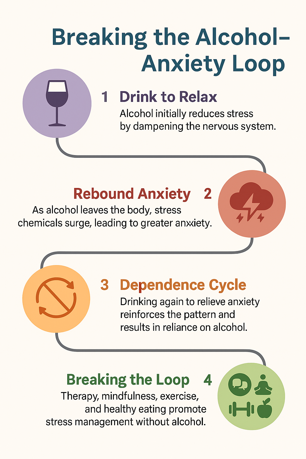 - This creates a vicious cycle: drink to calm → rebound anxiety → drink more.