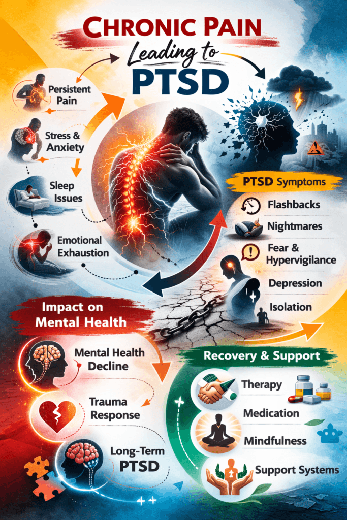 Science shows there are real changes in the brain when someone deals with chronic pain or PTSD. Both conditions can cause the nervous system to stay on “high alert,” which leaves people sensitive not just to pain, but to any threat or stress. Researchers have pointed out that the limbic system, which handles emotions and stress, is often heavily involved in both pain and PTSD.