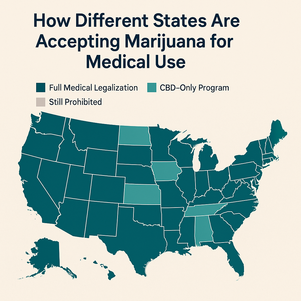 Answer: In the United States, the acceptance of marijuana for medical use varies widely from state to state, as it is still illegal at the federal level. However, many states have legalized medical marijuana to some degree. Here’s an overview of how different states is approaching medical marijuana:
