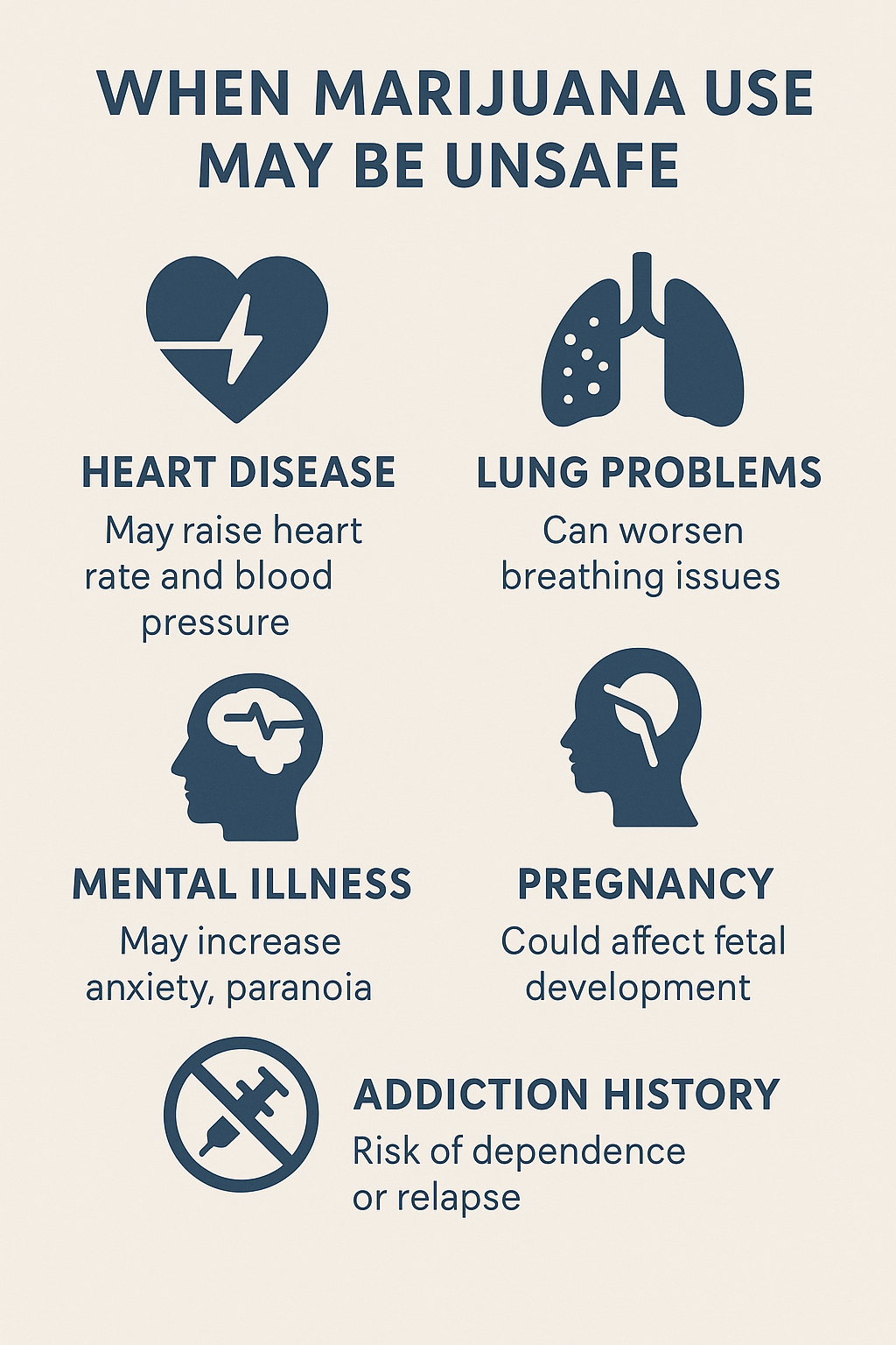 It’s always important for individuals to consult with a healthcare provider before using marijuana, especially if they have any of these conditions.