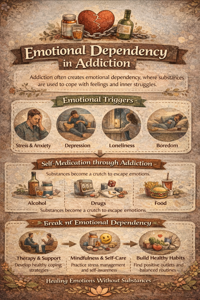 The National Institute on Drug Abuse notes that addiction isn’t only about willpower or bad choices. It’s a complicated mix of brain chemistry, genetics, and emotional factors (source). Emotional dependency is a big part of that mix.