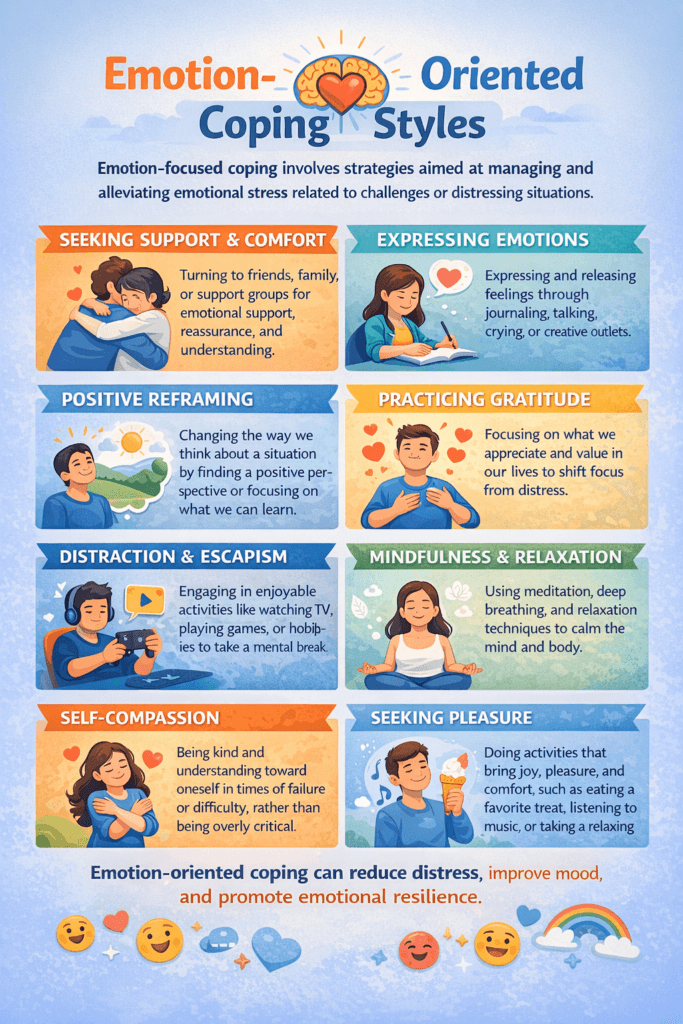 Emotion-oriented coping styles that focus on managing distress without addressing the root problem can increase the risk of addiction. These coping strategies often attempt to reduce negative emotions like anxiety, sadness, or anger, but in maladaptive ways. When such strategies become habitual, they can drive people toward substance use or behavioral addictions as a form of emotional escape or regulation.