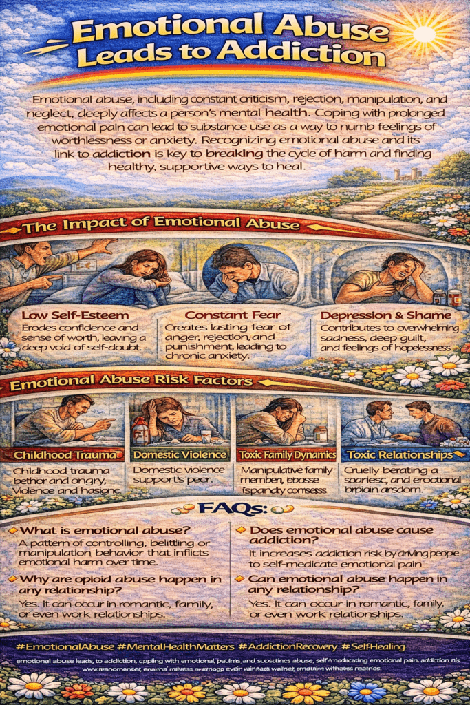 A: Emotional abuse creates chronic stress and low self-worth, leading many to use substances to numb emotional pain.