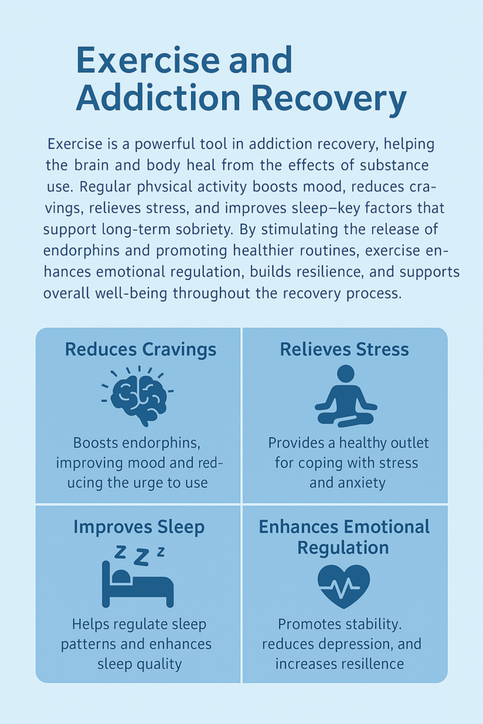 Exercise plays a crucial role in addiction recovery, providing a wide array of benefits that promote healing and long-term sobriety. Regular physical activity is a powerful tool in the recovery journey, as it improves physical, mental, and emotional health. Here’s how exercise positively influences addiction recovery:
