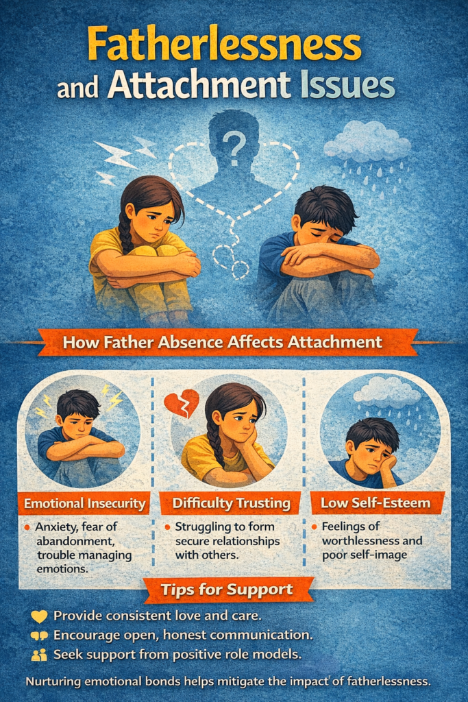 Attachment is about the early bonds we form with our caregivers, usually our parents, when we’re young. It’s a basic psychological need. Secure attachment helps us feel safe, learn to trust, and sets the stage for how we relate to other people. When that connection is missing or inconsistent, as in a fatherless home, attachment issues can start to brew.