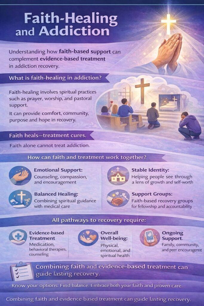 Answer: Addiction recovery is strongest when faith and evidence-based care work hand in hand. Faith-healing nurtures the spirit, while medical treatment heals the body and mind. Together, they form a complete path to restoration.