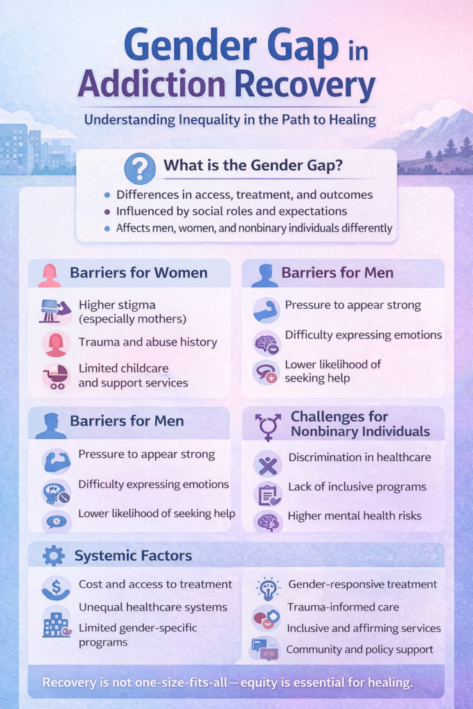 Addiction recovery is often presented as a universal process, but in reality, it is shaped by gender in significant ways. Men, women, and nonbinary individuals experience addiction differently and face unique barriers when seeking treatment. These differences are not just biological—they are deeply influenced by social expectations, stigma, and access to resources. Understanding the gender gap in addiction recovery reveals how inequality extends into healthcare and affects outcomes.