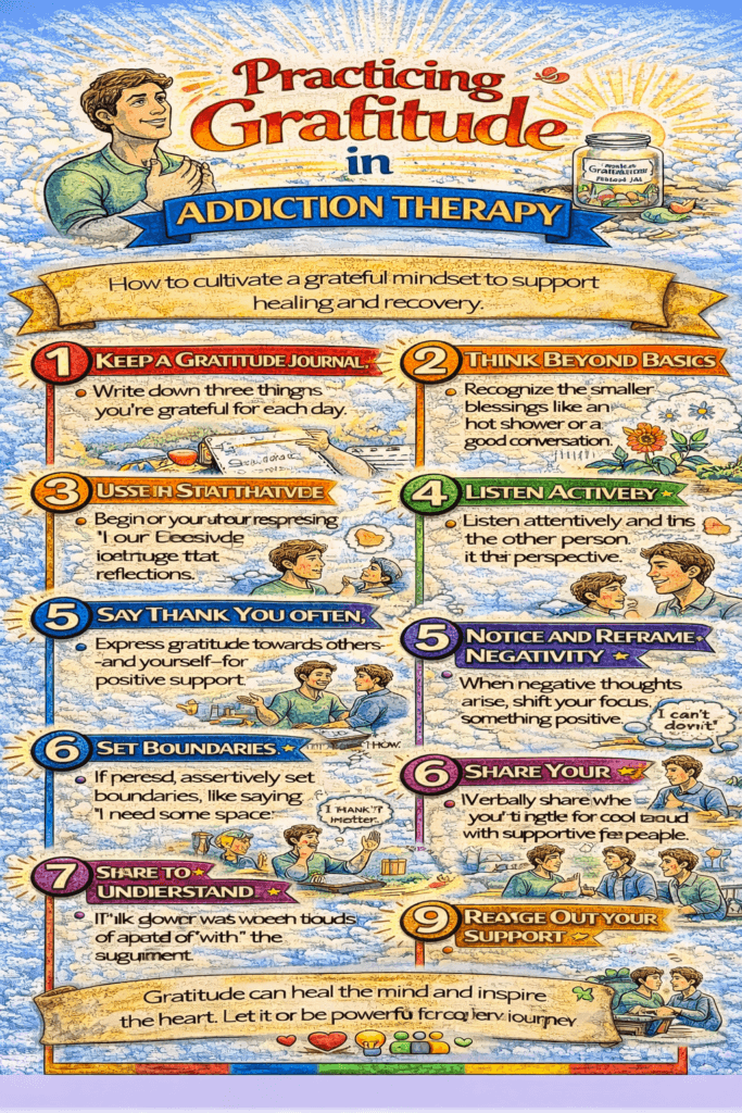 - How It Helps: Gratitude serves as a natural form of positive reinforcement, celebrating progress and inspiring continued efforts toward sobriety.