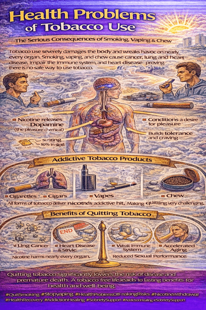The health consequences of tobacco use range from immediate effects, like coughing and fatigue, to severe, long-term impacts, including cancer, cardiovascular disease, and chronic respiratory conditions. Quitting smoking brings both immediate and long-term health benefits, including improved stamina, better immune function, and a significantly lower risk of life-threatening diseases. By choosing a tobacco-free lifestyle, individuals can take a proactive step toward better health and longevity. Support from healthcare providers, family, and community resources can provide essential guidance and encouragement to help individuals quit smoking and embrace a healthier life.