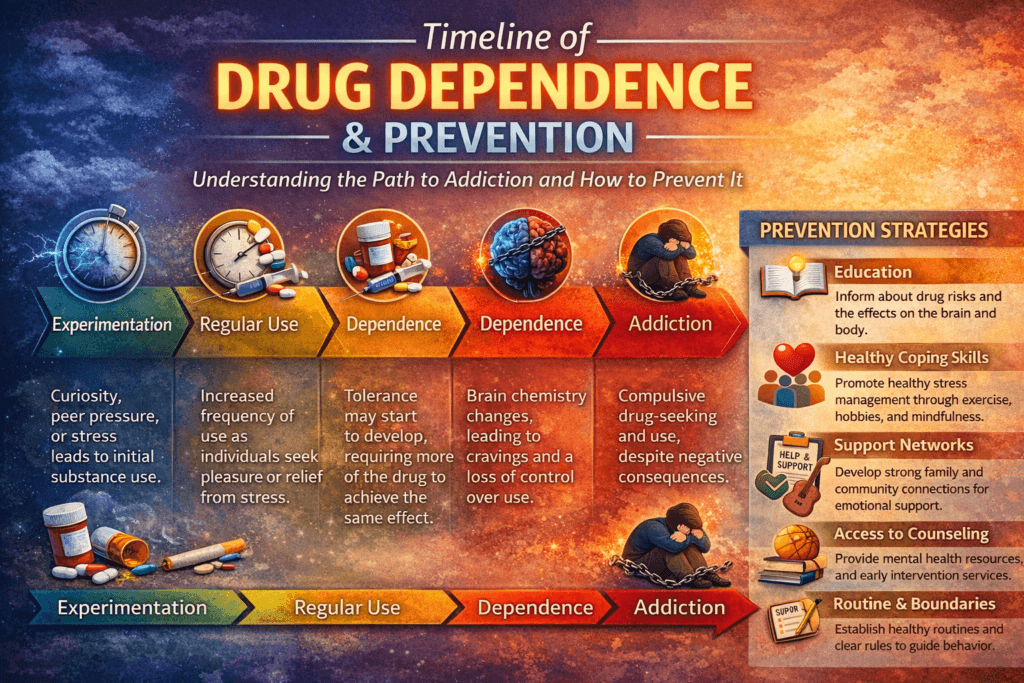 Awareness of how quickly dependence can develop reinforces the importance of early prevention strategies at personal, family, and community levels. Education, emotional support, stress-management skills, and access to healthy coping outlets all serve as protective barriers that slow or halt progression toward addiction. Rather than focusing solely on how long someone has used a substance, effective prevention emphasizes understanding risk factors, strengthening resilience, and promoting informed decision-making. When people are equipped with knowledge and support early, the trajectory toward dependence can often be interrupted, making prevention one of the most powerful tools in reducing substance-related harm.