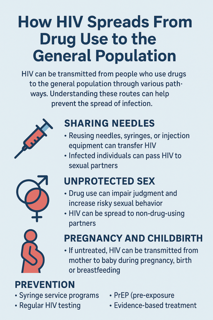 - Sexual Transmission: Drug use, especially with certain substances, lowers inhibitions and can lead to risky sexual behavior, like having unprotected sex. If a person who injects drugs has sex with a partner outside their network, the virus can move to new people easily.