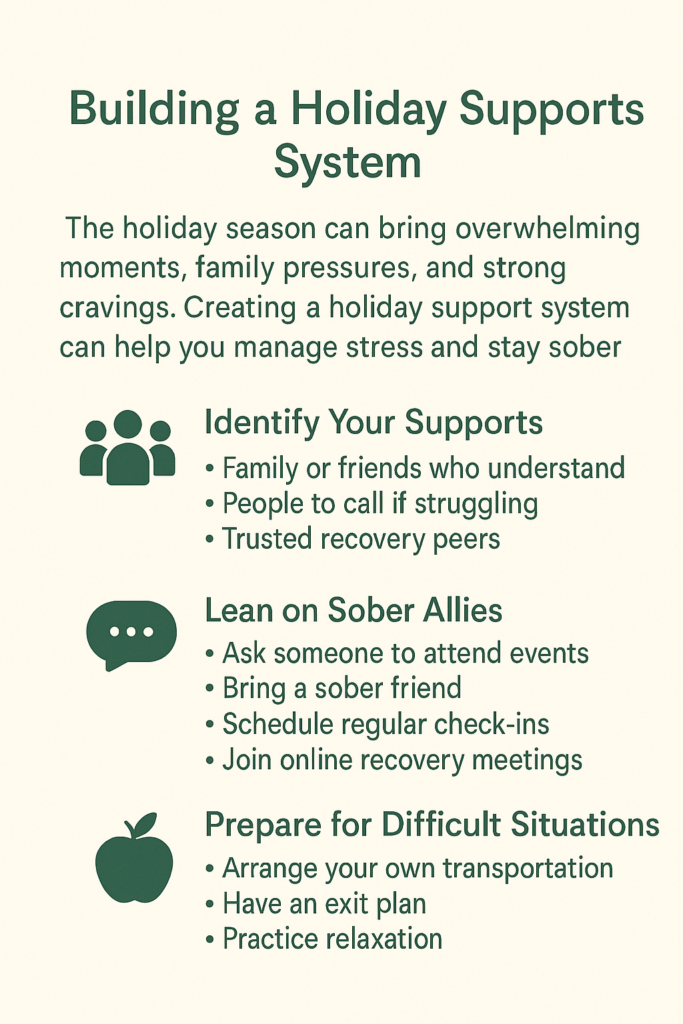 Holiday traditions, family events, and social gatherings can be loaded with triggers. There’s food and drink everywhere, and it’s not uncommon to run into people or situations that remind you of old routines. On top of that, the pressure to appear cheerful or keep up appearances can make you feel isolated, even in a crowd. These factors can make this time of year risky if you’re trying to avoid relapse, and this is precisely why a support system is super important right now.