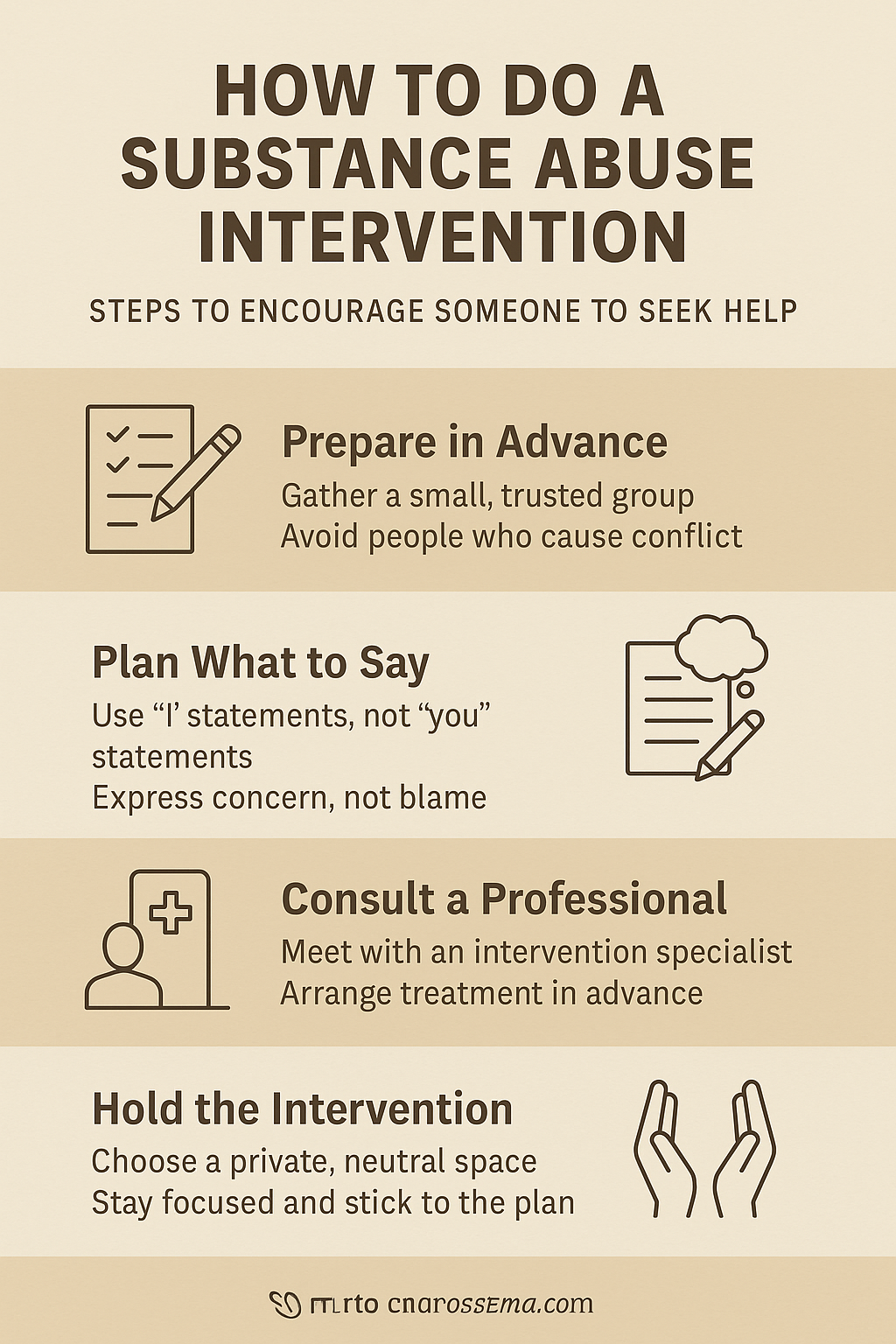 The following guide explains an all-in-one, step-by-step approach for planning and executing a substance abuse intervention. Whether you are a concerned friend, family member, or community member motivated to help someone in need, these strategies provide a structured outline for creating a respectful and effective intervention process. With detailed preparation and supportive dialogue, every participant can help make this critical moment a turning point in the journey toward recovery.