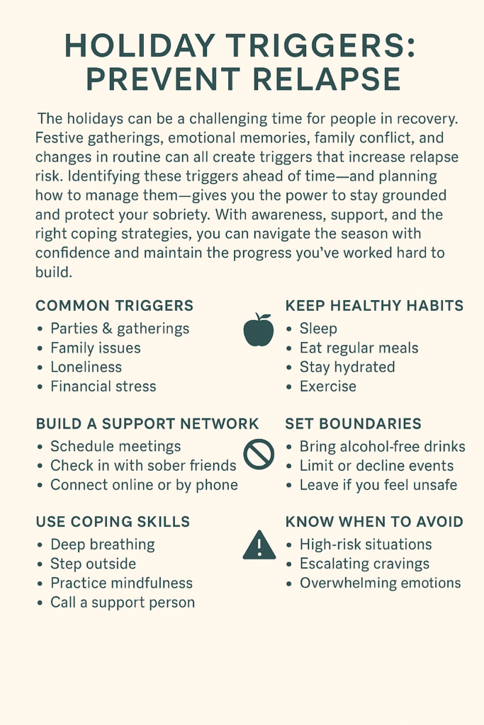 If you’re in recovery, the holidays can be packed with moments that feel a little tricky to find your way through. With so many social events, changes in routine, and a lot more pressure in the air, managing triggers to avoid relapse takes a bit of planning and self-awareness. I’ve found that understanding your triggers and having a solid action plan makes a huge difference when things get stressful this time of year.