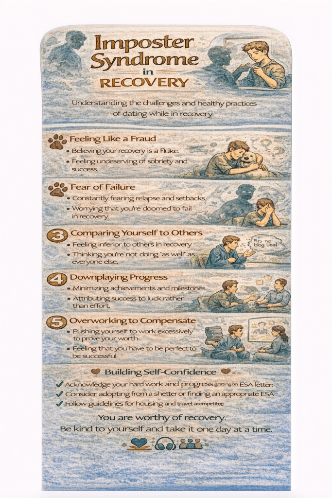 Imposter syndrome in recovery is the feeling that you don’t truly deserve sobriety or that your progress is fake and will eventually be exposed. Many people in recovery feel they are “not really recovered” despite positive change.