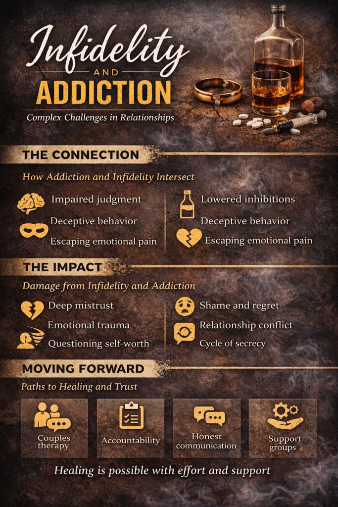 When addiction and infidelity coexist, the emotional impact on both partners is intensified.
