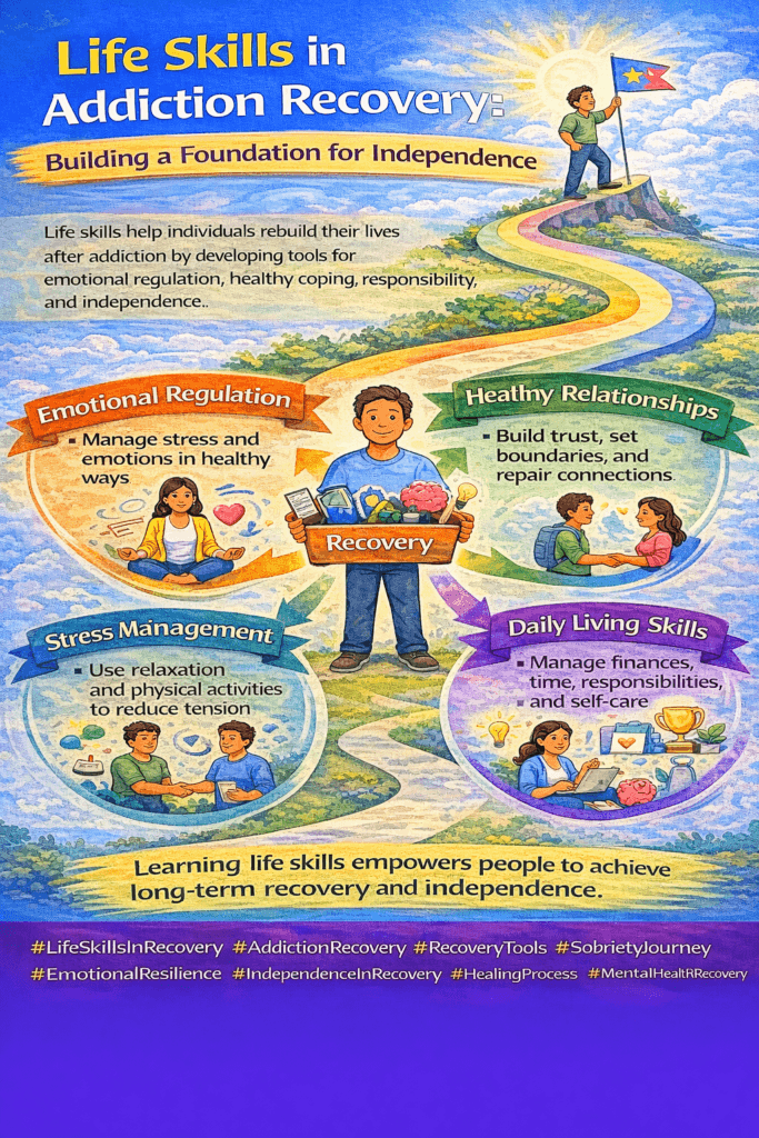 Life skills in recovery are practical and emotional abilities that help individuals manage daily responsibilities, relationships, and stress without relying on substances.
