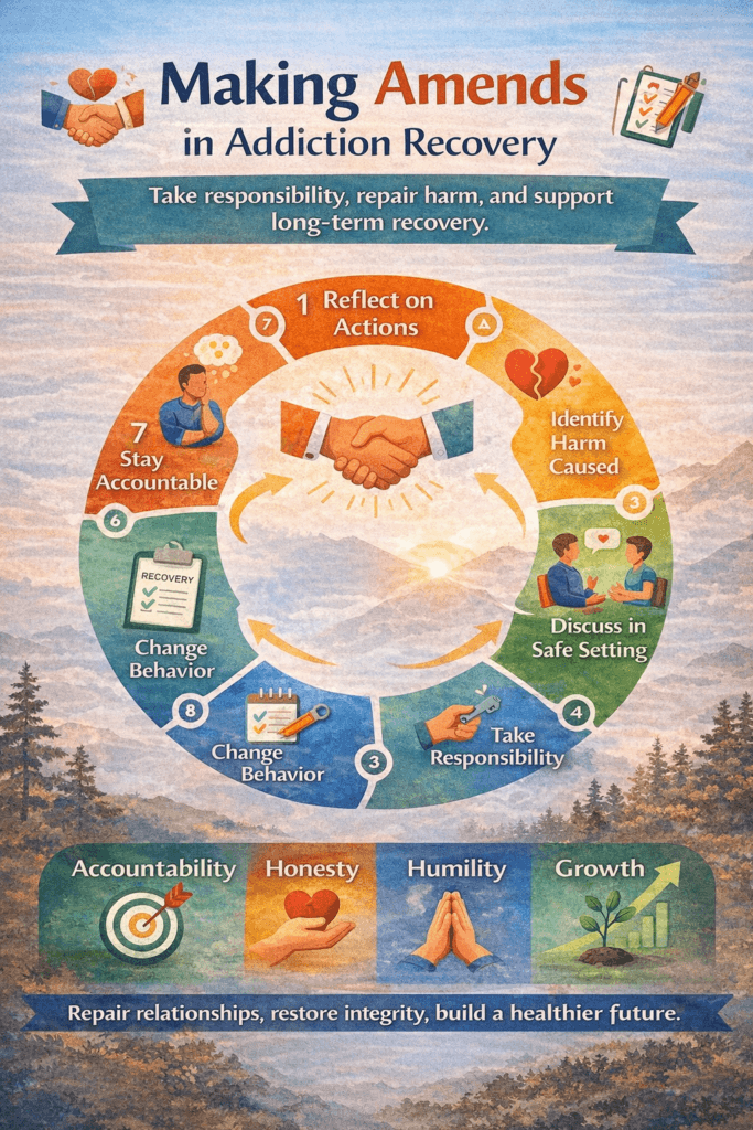 Making amends means taking responsibility for harm caused during active addiction and making sincere efforts to repair that harm through changed behavior, accountability, and respectful communication.