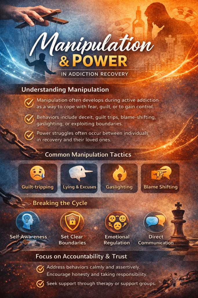 Addiction recovery is not only a process of stopping substance use—it is also a process of rebuilding honesty, autonomy, and healthy relationships. One of the more complex and often misunderstood aspects of this journey is the role of manipulation and power dynamics. During active addiction, manipulation can become a learned survival strategy, used to obtain substances, avoid consequences, or maintain a sense of control. In recovery, recognizing and addressing these patterns is essential for long-term growth.
