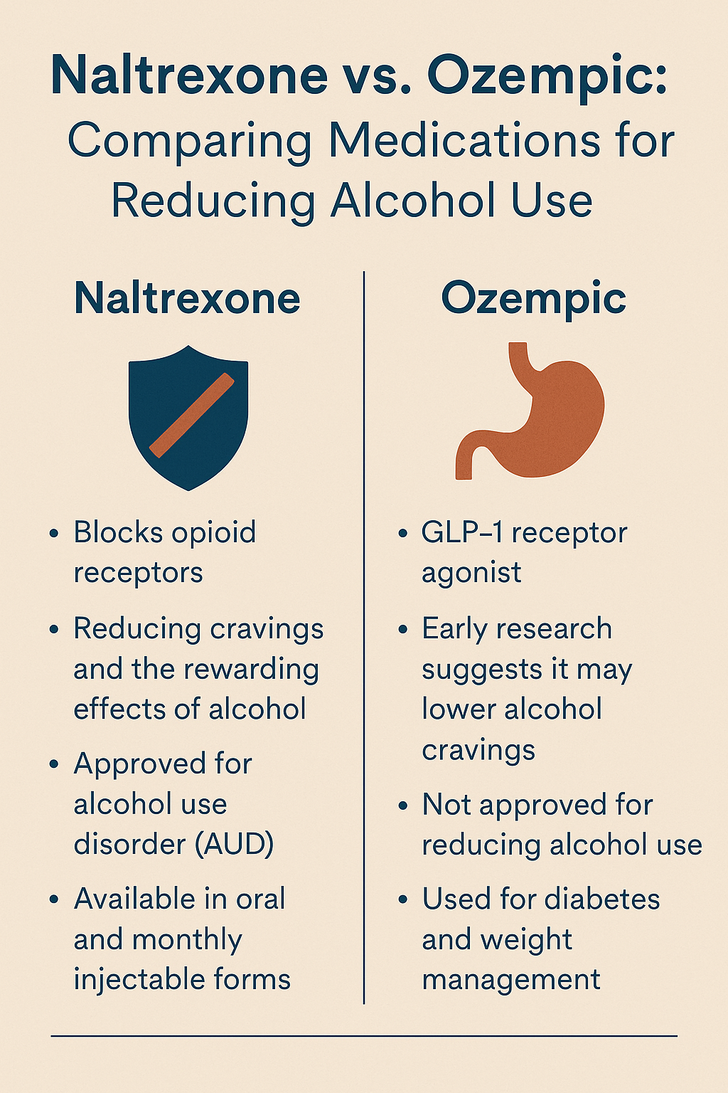 Naltrexone vs. Ozempic: Comparing Medications for Reducing Alcohol Use