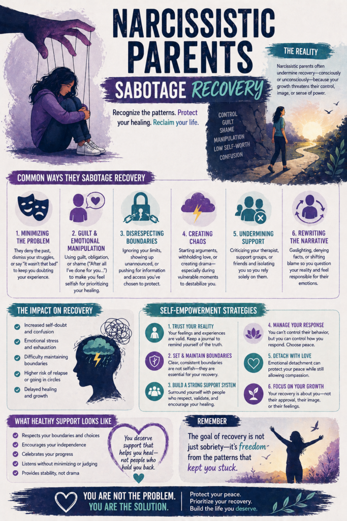 Understanding how narcissistic parents may sabotage recovery is not about blame—it’s about clarity. Because what looks like “lack of progress” is sometimes the result of active or subtle interference from the environment.