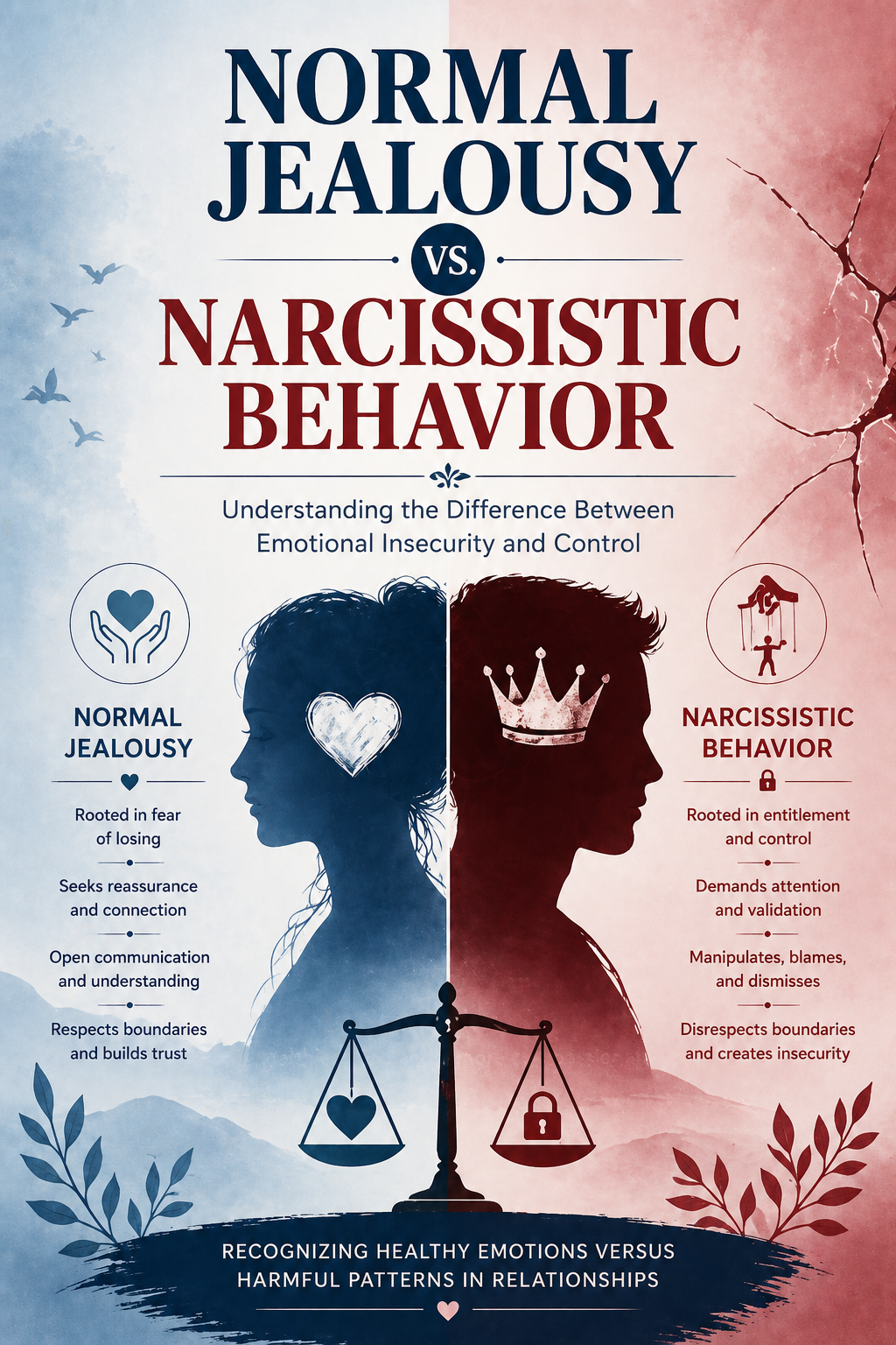 Jealousy, in its normal form, is part of being human—it reflects care, attachment, and vulnerability. But when it shifts into control, entitlement, and lack of empathy, it becomes something entirely different.