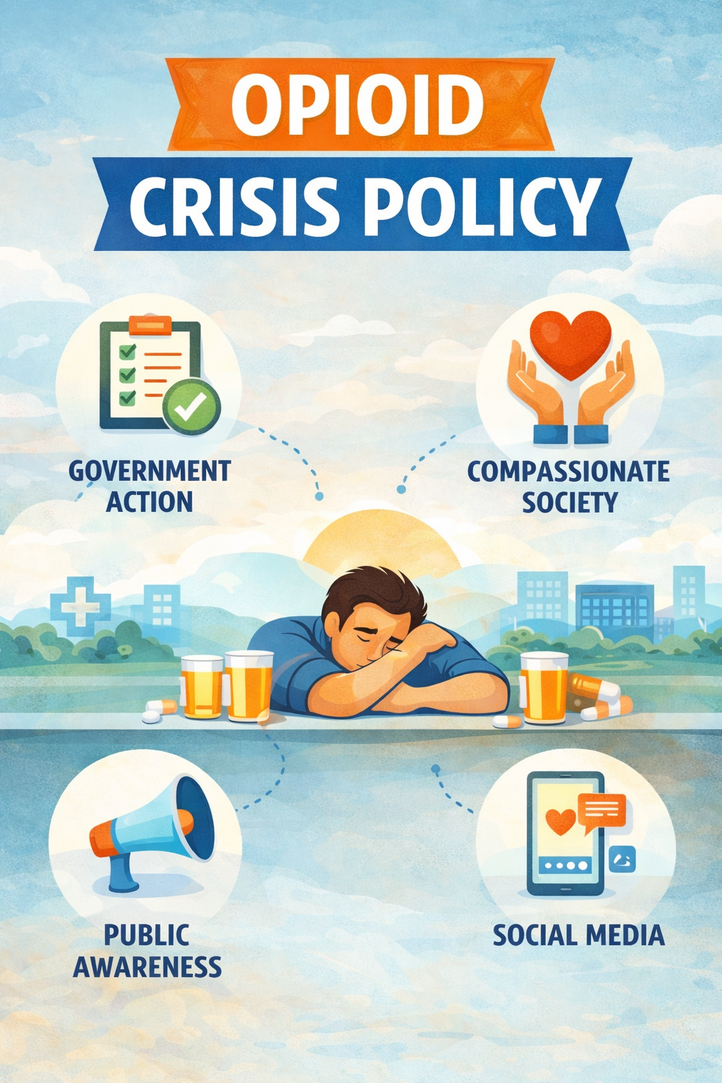 The opioid crisis remains one of the most urgent public health challenges of our time, affecting individuals, families, healthcare systems, and entire communities. Addressing this crisis requires more than medical treatment alone; it demands sustained policy attention, government action, responsible use of social media, and supportive societal ideologies. When policymakers prioritize overdose prevention and treatment access, governments invest in evidence-based interventions, social media amplifies education and advocacy, and society embraces compassion over stigma, meaningful progress becomes possible. A coordinated approach across these sectors is essential to reduce opioid-related harm and build pathways to recovery.
