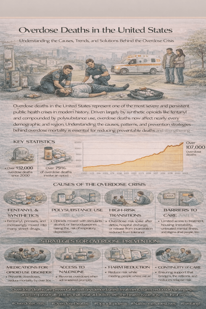 Overdose deaths in the United States remain a critical public health issue, with the opioid epidemic being a significant driver of these high rates. Here’s a snapshot of the most recent data and trends concerning overdose deaths: