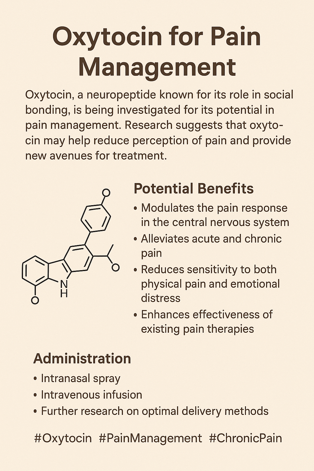 - While the potential benefits of oxytocin as an adjunctive therapy in pain management and addiction treatment are promising, further research is needed to understand its complete mechanisms, optimal dosing, and long-term effects. Clinical trials will be essential to determine the effectiveness and safety of oxytocin in these contexts.