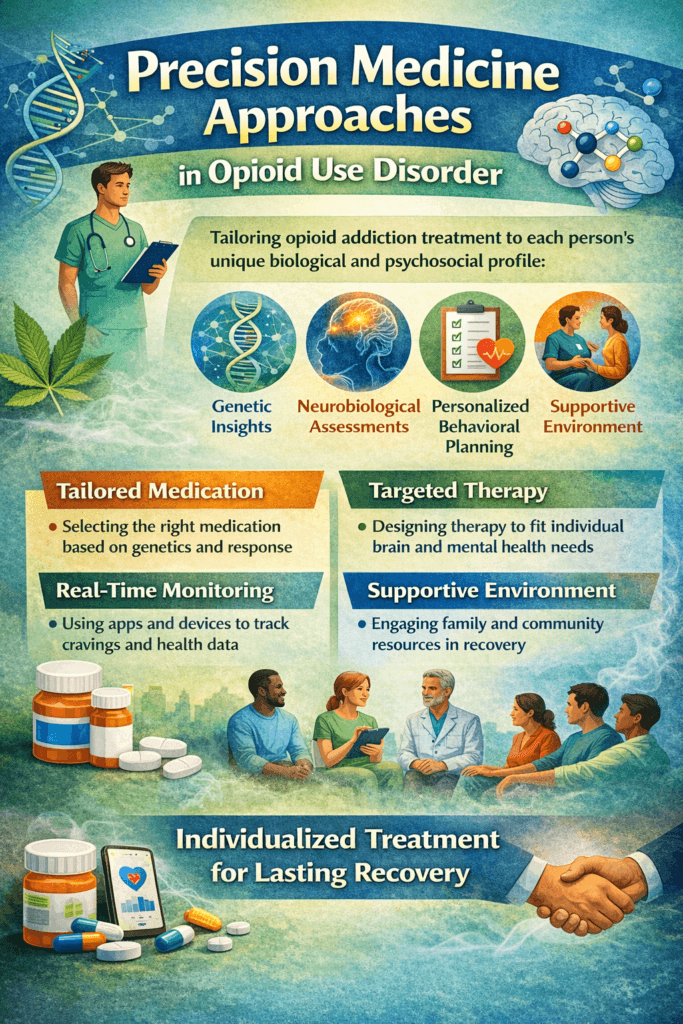 Precision medicine is reshaping how opioid use disorder is treated by replacing one-size-fits-all care with individualized recovery strategies. When personalized medication selection, targeted therapy, and real-time health monitoring are combined with self-management, family involvement, and community support, treatment becomes more effective and sustainable. As research and technology continue to advance, precision-based addiction care offers renewed hope for reducing relapse, improving quality of life, and building long-term recovery. With access to personalized treatment and supportive environments, individuals facing opioid use disorder can achieve stronger, more lasting healing.
