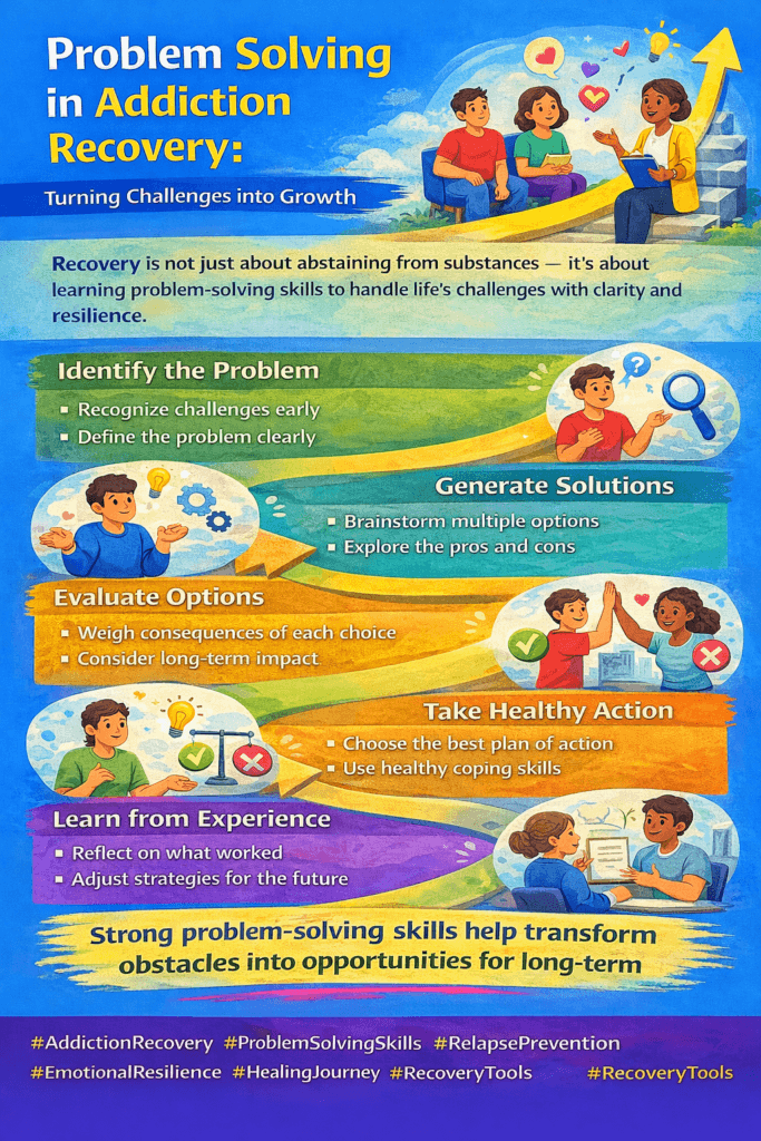 Problem-solving helps individuals handle stress, conflicts, and daily challenges without turning to substances. Strong problem-solving skills reduce impulsive reactions that can lead to relapse.