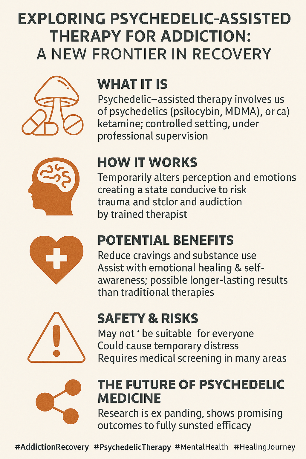 Psychedelic-assisted therapy is a developing treatment that uses substances like psilocybin, MDMA, and ketamine to address mental health issues such as addiction and PTSD. It offers benefits like emotional healing and self-awareness but also presents challenges, including legal barriers, misuse risks, and ethical concerns about safety and consent. Successful therapy relies on self-management strategies, family support, and community resources to help individuals sustain recovery and ensure long-term success.