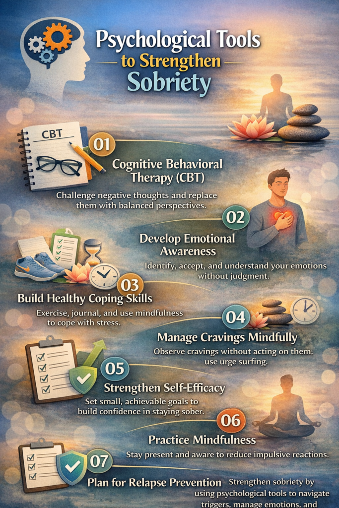 Sobriety is not just physical—it requires mental and emotional stability. Psychological tools help individuals: