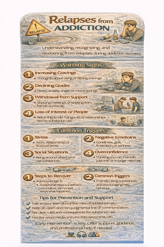 Relapses often occur due to stress, unresolved trauma, untreated mental health conditions, exposure to triggers, lack of support, or overconfidence in early recovery.