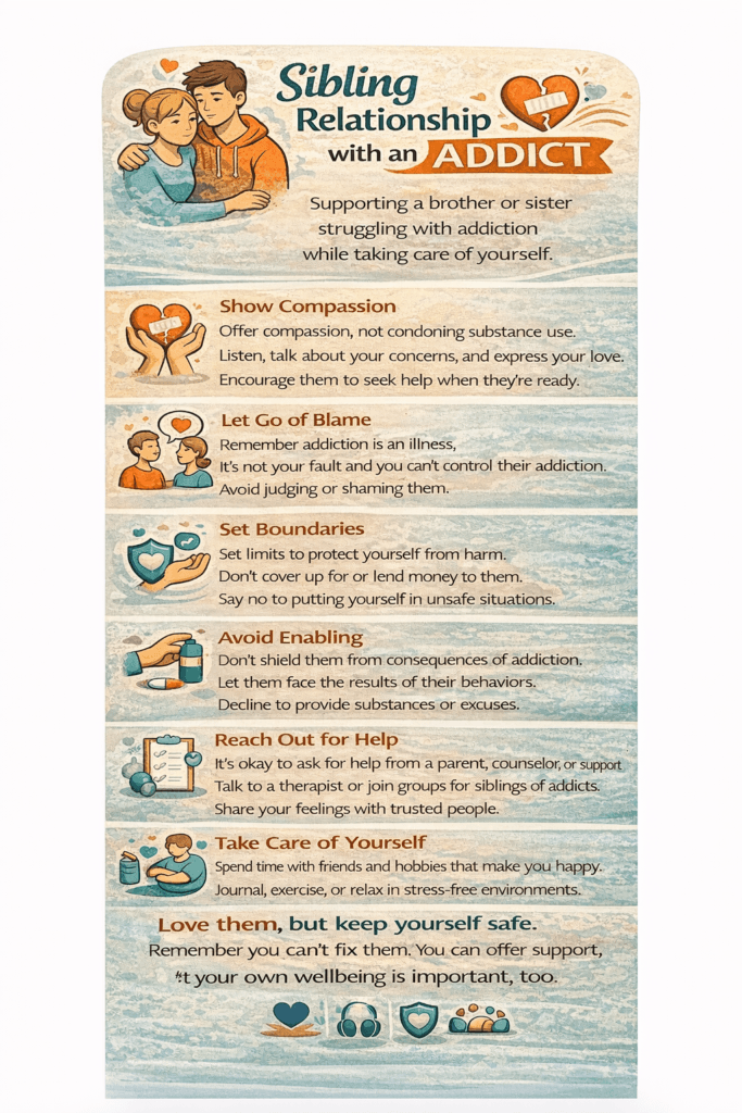 Maintain your own routines, friendships, goals, and emotional support. You deserve stability even if your sibling is struggling.