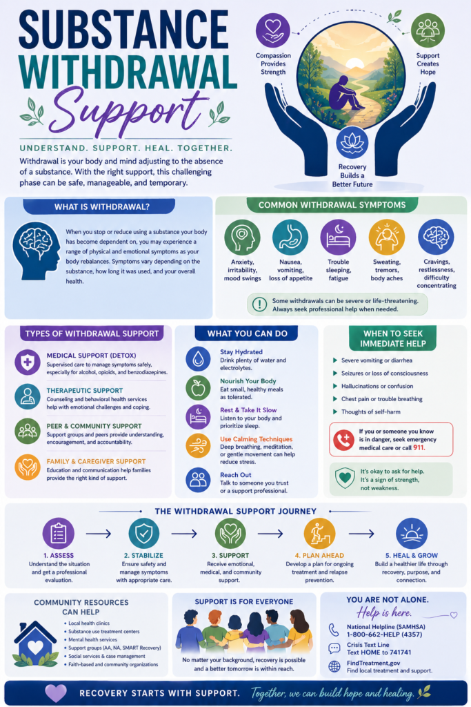 Substance withdrawal is a challenging but crucial step toward recovery. With the right support—medical guidance, emotional care, and ongoing resources—individuals can move through this phase safely and begin building a healthier, more stable future. Recovery doesn’t start after withdrawal—it starts within it.