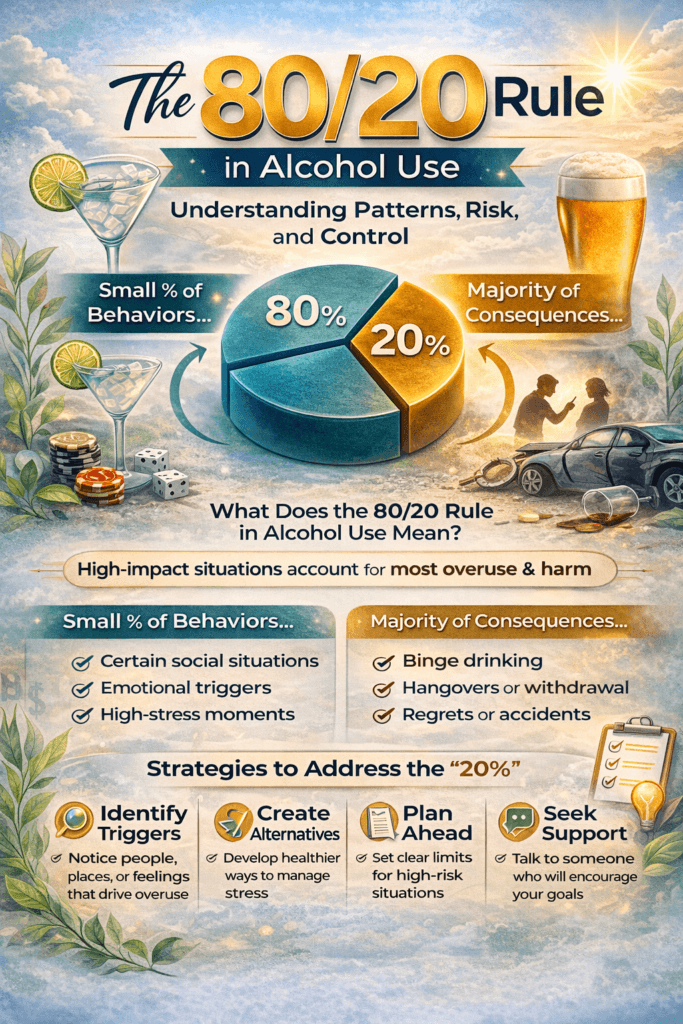 Ultimately, the 80/20 rule isn’t about judgment—it’s about insight. By recognizing that a minority of drinking patterns often drives the majority of consequences, people can focus on targeted changes that produce meaningful results. Small adjustments in high-risk situations can lead to large improvements in health, relationships, and overall well-being.