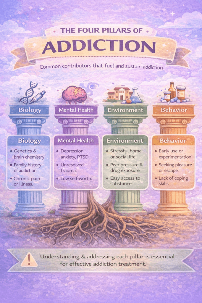 Addiction isn’t just a matter of willpower or simple bad choices. The way it develops and persists is influenced by a mix of physical, mental, social, and spiritual factors. When I first learned about the four pillars, I realized how important it is to see addiction as something that moves into every area of life, not just one.