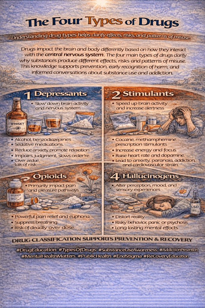 The main thing that sets one drug apart from another is how it changes brain and body activity. Let’s break down what each type does to help you recognize different drugs and their effects: