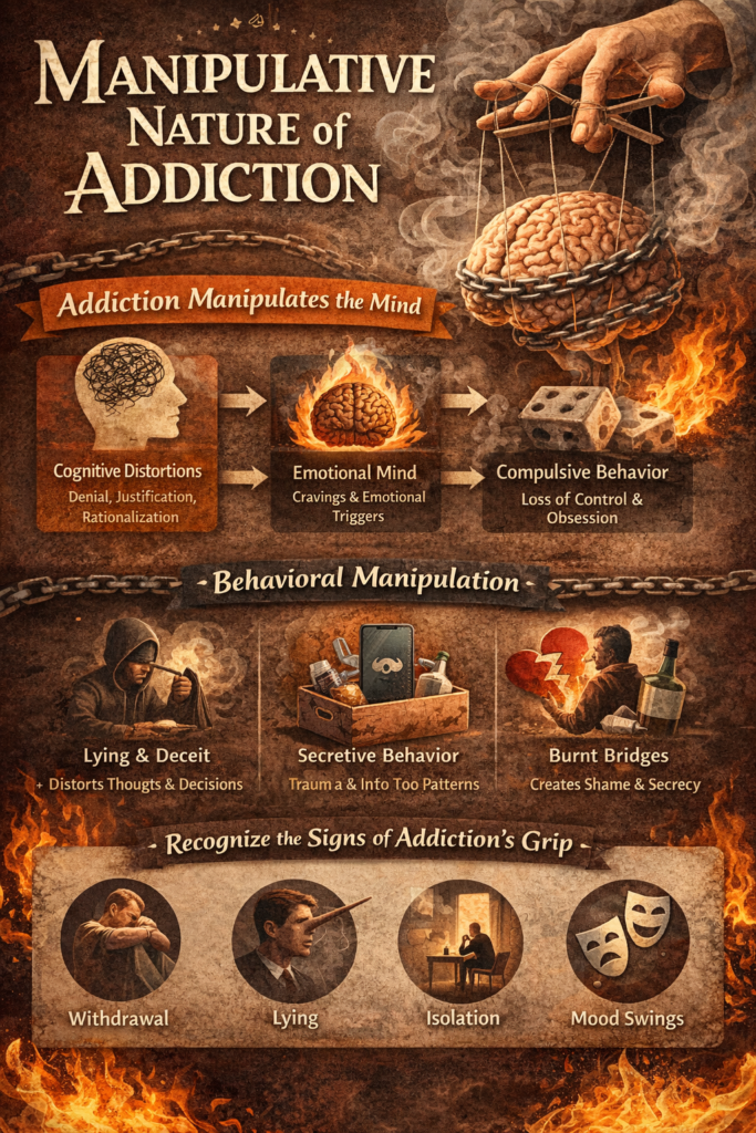 Addiction isn’t just about willpower or making the wrong choices. It’s more like a tangled web that slowly develops in the brain, changing the way a person thinks, feels, and behaves. From the outside, it can look like someone is making bad decisions on purpose, but from the inside, it is a totally different story. The manipulative part comes in the way addiction tricks your mind and rewires what feels important.