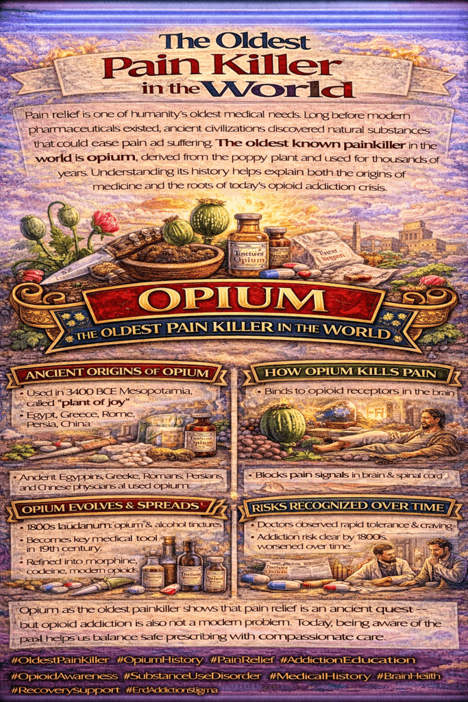 Opium, derived from the poppy plant, is widely recognized as the world’s oldest documented painkiller. Ancient civilizations used it long before today’s modern medicine.