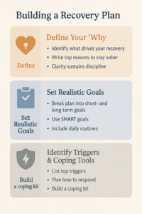 - Set Clear, Specific Goals: Try things like, “I won’t use [substance] today,” or “I’ll call my sponsor when I’m stressed.” Write them down. Short-term goals (like one day at a time) sit alongside bigger ones (like three months clean).